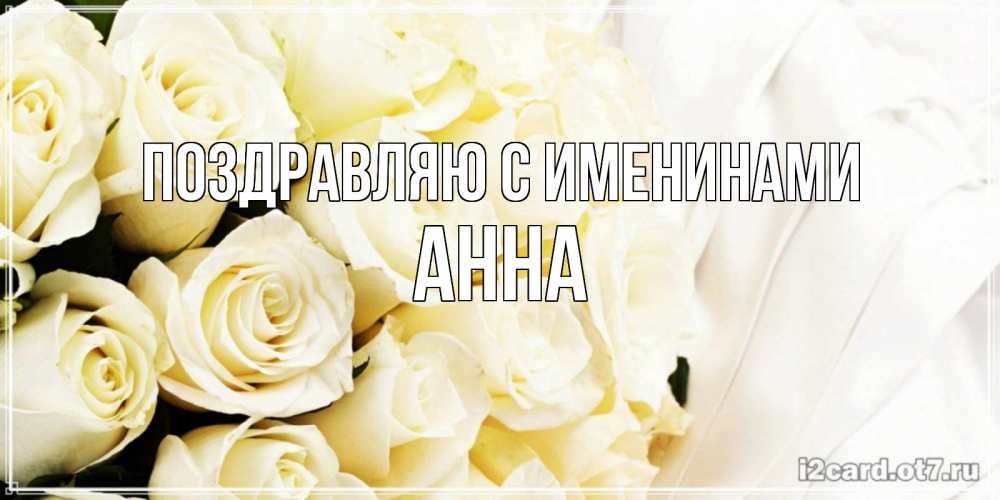 Открытка Поздравляю с именинами Анна. открытка с белыми розами с именем. белые розы в букете