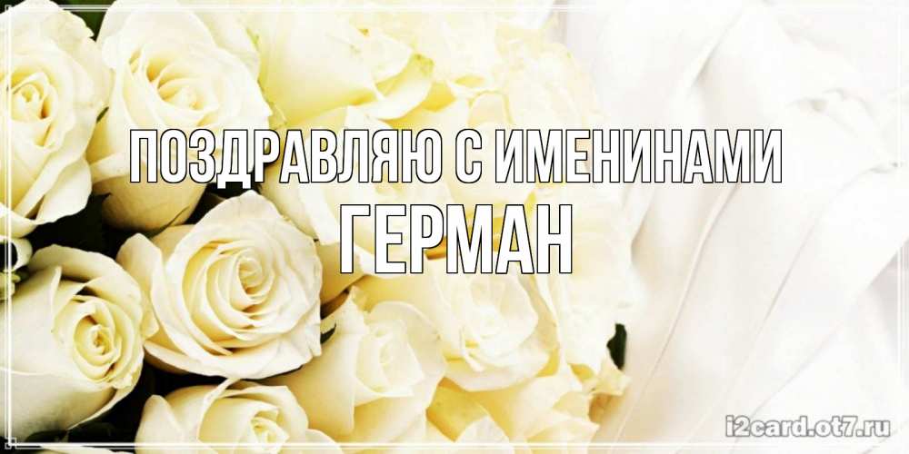 Открытка Поздравляю с именинами Герман. открытка с белыми розами с именем. белые розы в букете