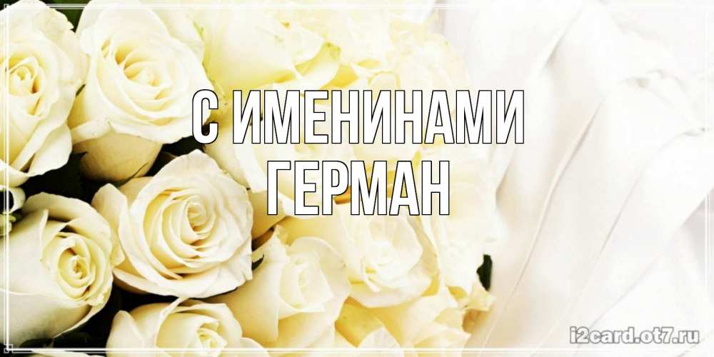 Открытка С именинами Герман. открытка с белыми розами с именем. белые розы в букете