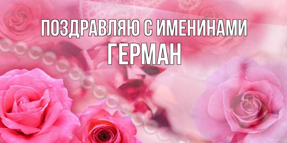 Открытка Поздравляю с именинами Герман. красивые розы и жемчуг. открытка с розами и жемчугом