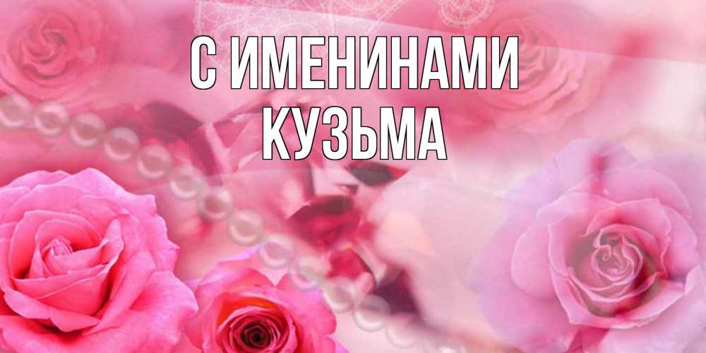 Открытка С именинами Кузьма. красивые розы и жемчуг. открытка с розами и жемчугом