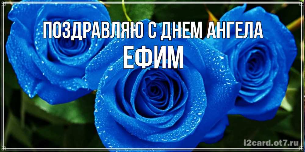 Открытка Поздравляю с днем Ангела Ефим. синие розы. розы с синим цветом