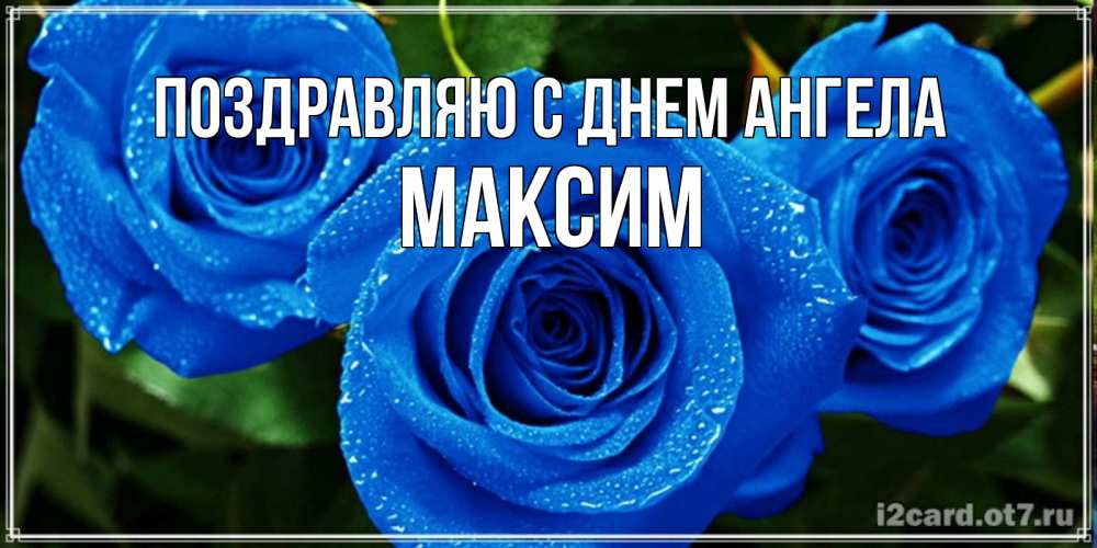 Открытка Поздравляю с днем Ангела Максим. синие розы. розы с синим цветом
