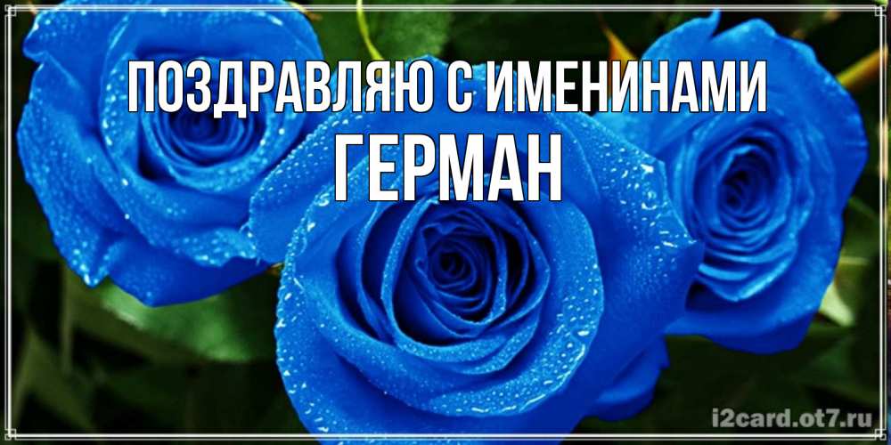 Открытка Поздравляю с именинами Герман. синие розы. розы с синим цветом