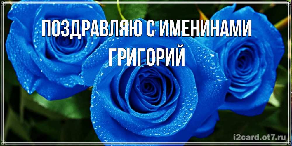 Открытка Поздравляю с именинами Григорий. синие розы. розы с синим цветом
