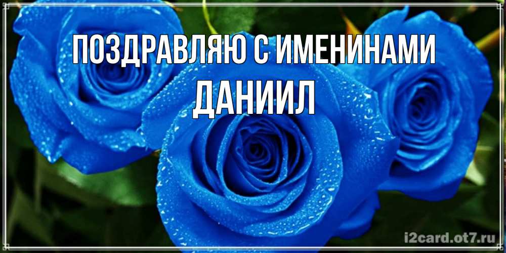 Открытка Поздравляю с именинами Даниил. синие розы. розы с синим цветом