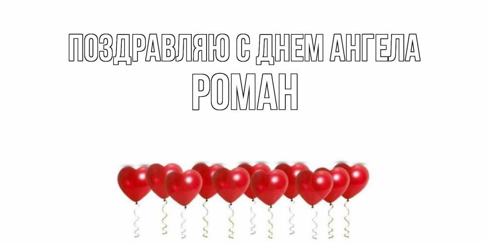 Открытка Поздравляю с днем Ангела Роман. красные шары в виде сердечек с лентами. воздушные шары, сердце