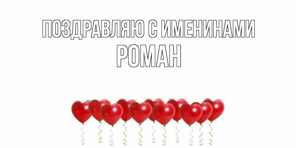 Открытка Поздравляю с именинами Роман. красные шары в виде сердечек с лентами. воздушные шары, сердце