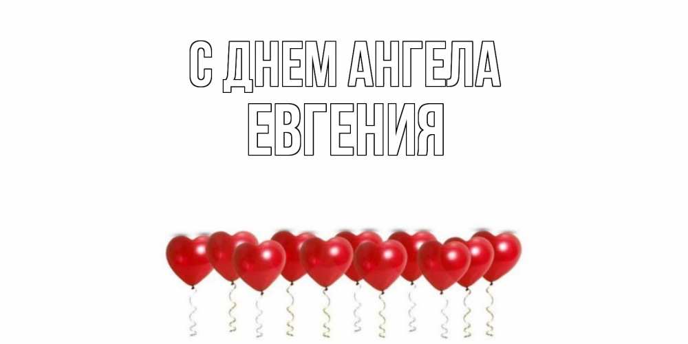 Открытка С днем Ангела Евгения. красные шары в виде сердечек с лентами. воздушные шары, сердце