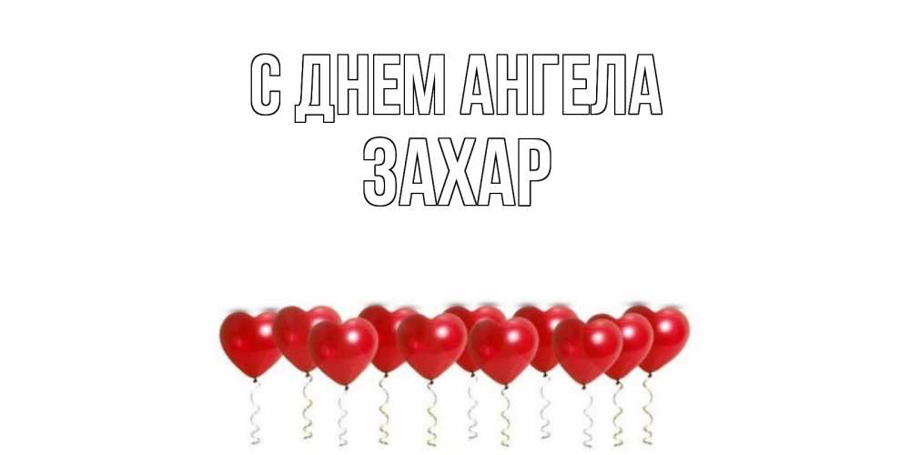 Открытка С днем Ангела Захар. красные шары в виде сердечек с лентами. воздушные шары, сердце