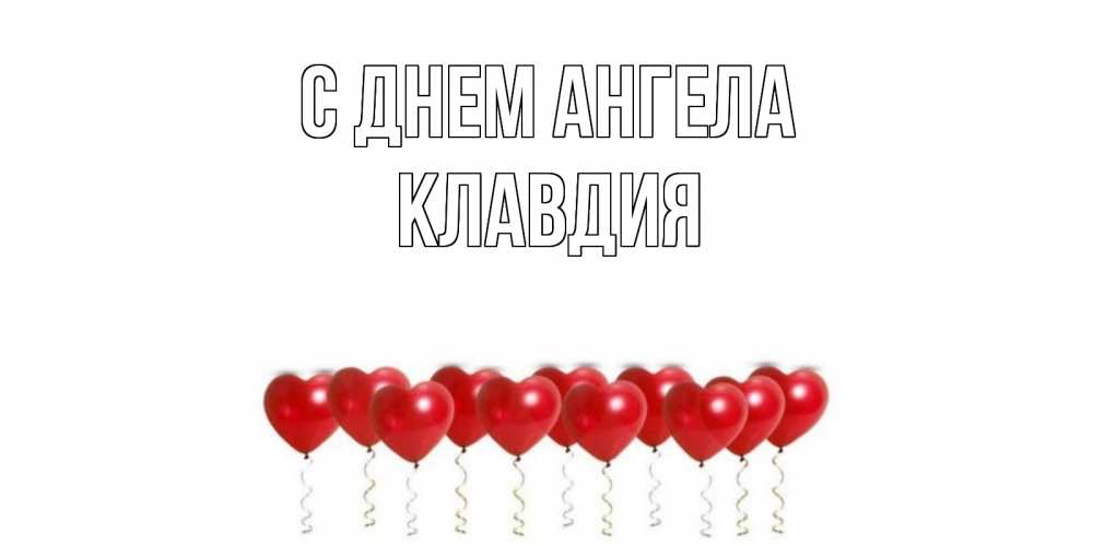 Открытка С днем Ангела Клавдия. красные шары в виде сердечек с лентами. воздушные шары, сердце