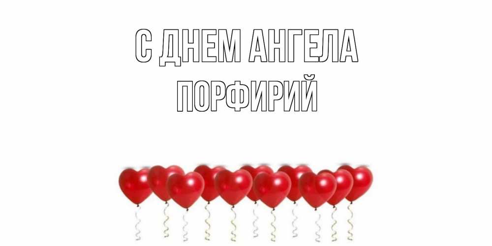 Открытка С днем Ангела Порфирий. красные шары в виде сердечек с лентами. воздушные шары, сердце