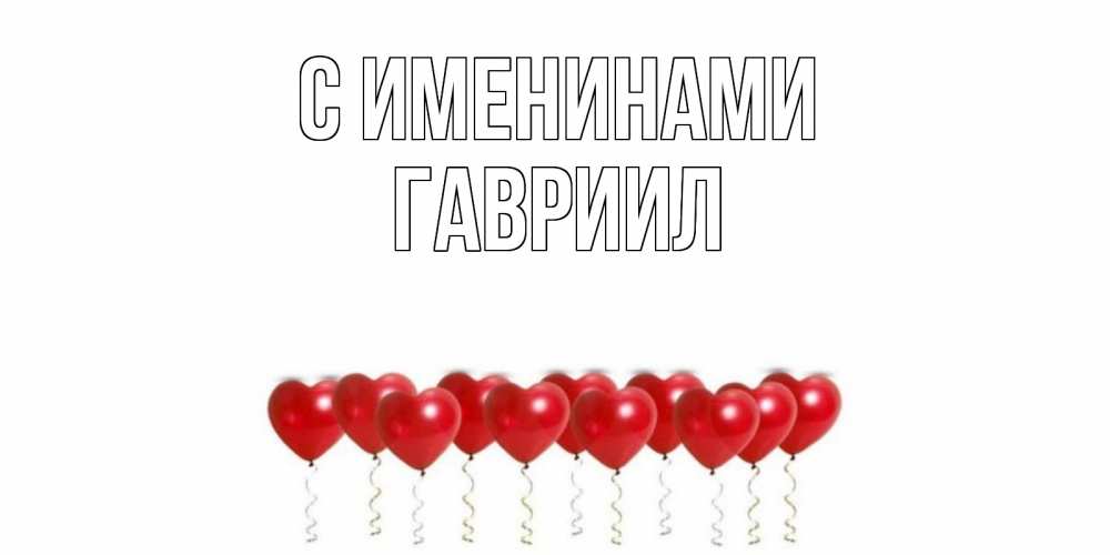 Открытка С именинами Гавриил. красные шары в виде сердечек с лентами. воздушные шары, сердце