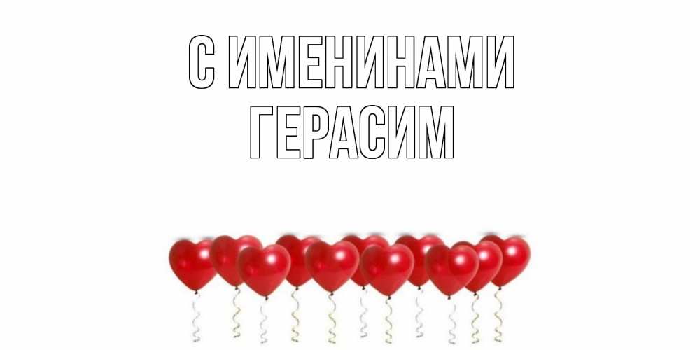 Открытка С именинами Герасим. красные шары в виде сердечек с лентами. воздушные шары, сердце