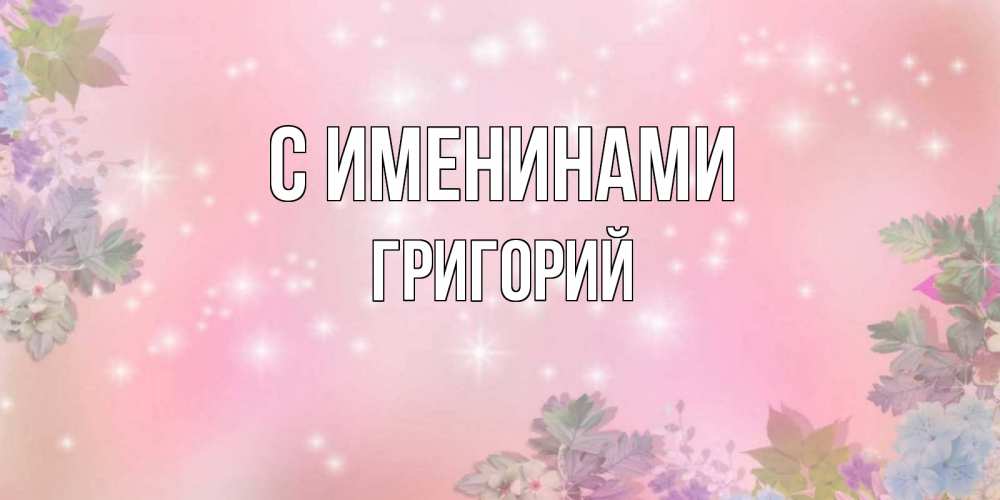 Открытка С именинами Григорий. красивый нежный фон на открытке. открыта с цветами в нежных тонах
