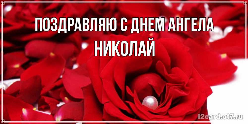Открытка Поздравляю с днем Ангела Николай. рожа и жемчужина. роза с жемчужиной на открытке для любимых