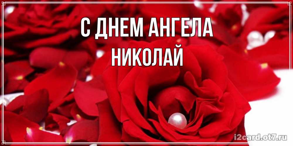 Открытка С днем Ангела Николай. рожа и жемчужина. роза с жемчужиной на открытке для любимых