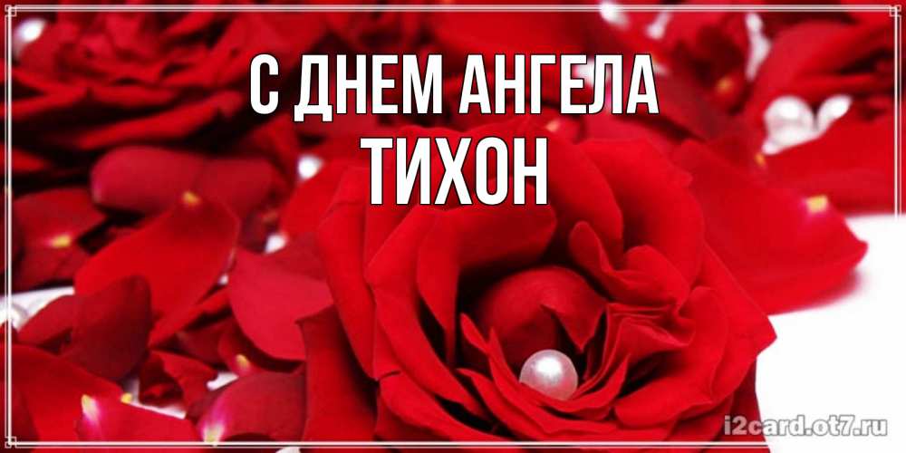 Открытка С днем Ангела Тихон. рожа и жемчужина. роза с жемчужиной на открытке для любимых