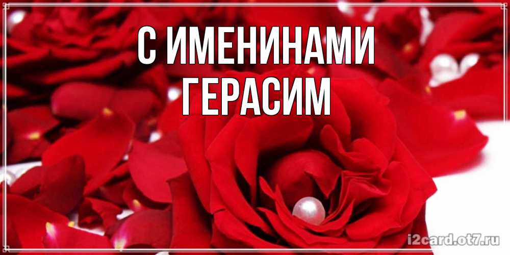 Открытка С именинами Герасим. рожа и жемчужина. роза с жемчужиной на открытке для любимых