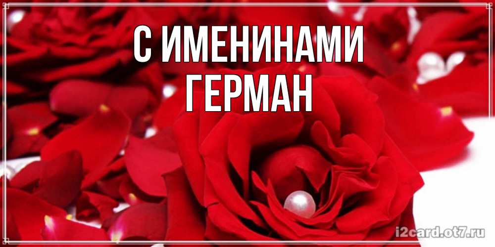 Открытка С именинами Герман. рожа и жемчужина. роза с жемчужиной на открытке для любимых