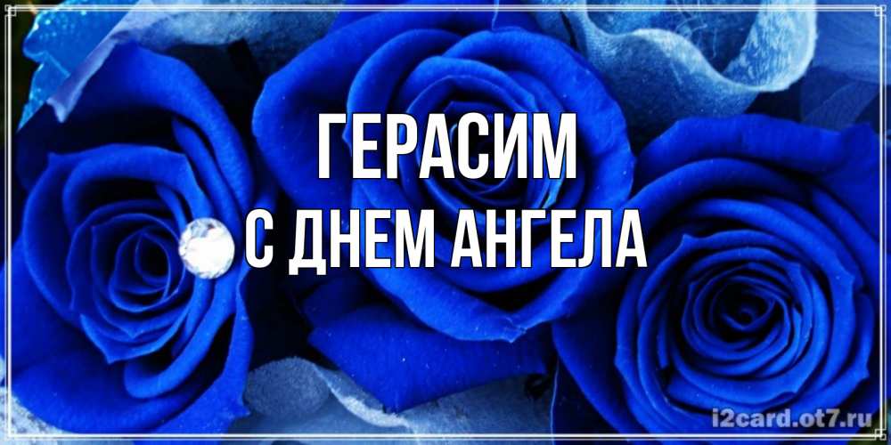 Открытка Герасим С днем ангела. синяя роза и роса. синие розы в росе