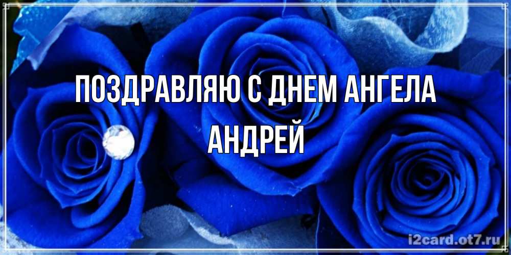Открытка Поздравляю с днем Ангела Андрей. синяя роза и роса. синие розы в росе