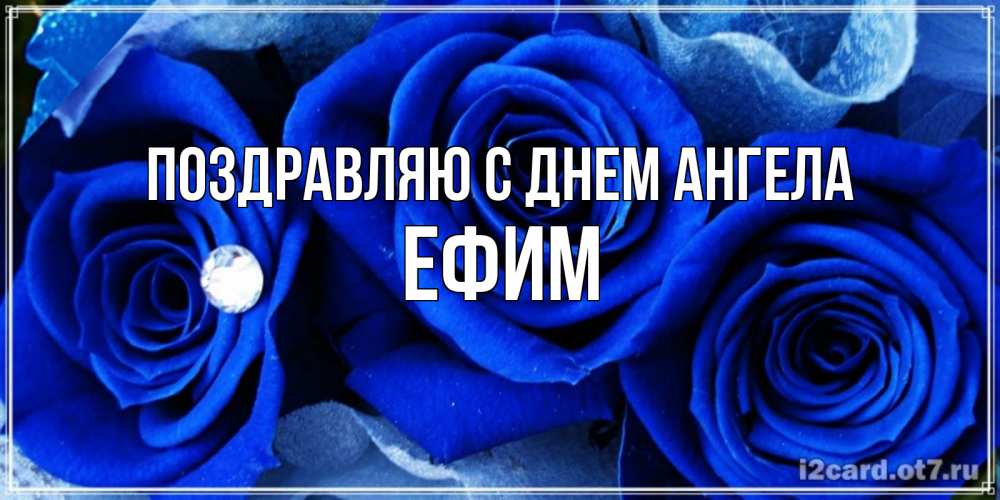 Открытка Поздравляю с днем Ангела Ефим. синяя роза и роса. синие розы в росе