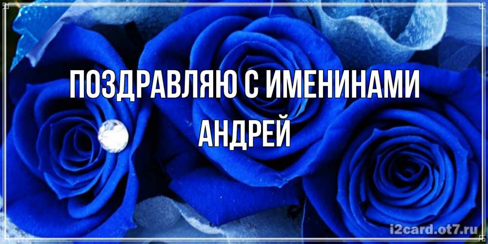 Открытка Поздравляю с именинами Андрей. синяя роза и роса. синие розы в росе