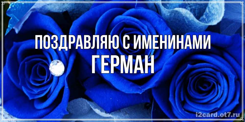 Открытка Поздравляю с именинами Герман. синяя роза и роса. синие розы в росе