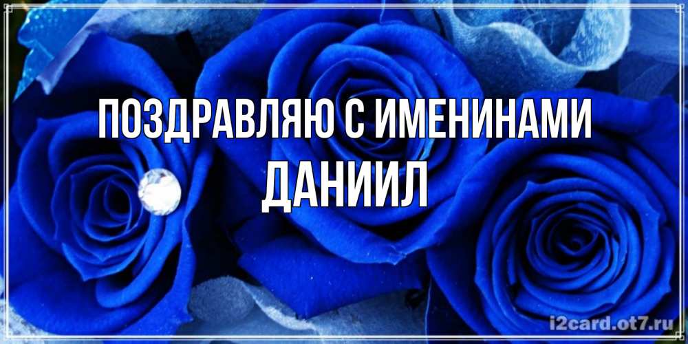 Открытка Поздравляю с именинами Даниил. синяя роза и роса. синие розы в росе
