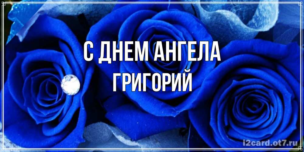 Открытка С днем Ангела Григорий. синяя роза и роса. синие розы в росе