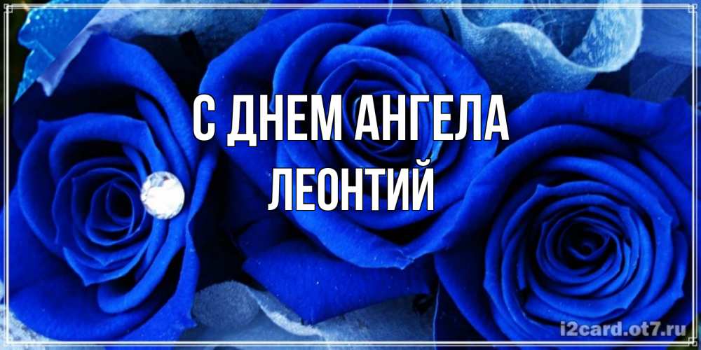 Открытка С днем Ангела Леонтий. синяя роза и роса. синие розы в росе