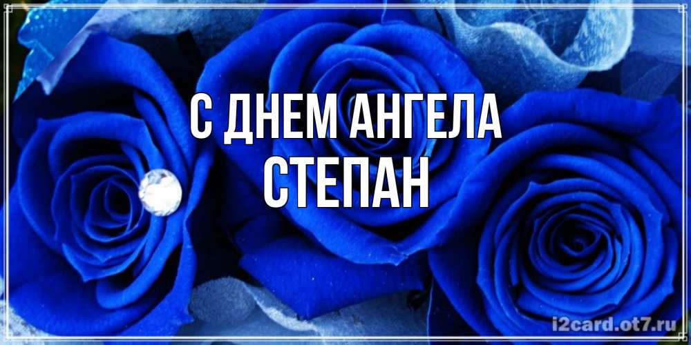 Открытка С днем Ангела Степан. синяя роза и роса. синие розы в росе