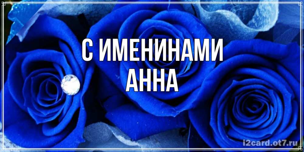 Открытка С именинами Анна. синяя роза и роса. синие розы в росе