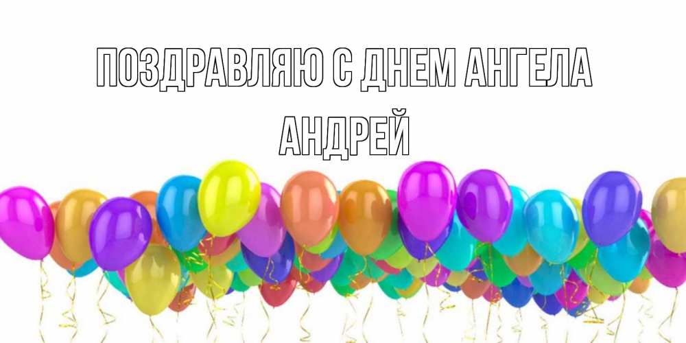 Открытка Поздравляю с днем Ангела Андрей. открытка с разноцветными шариками и именем. шары на день рождения всех цветов радуги