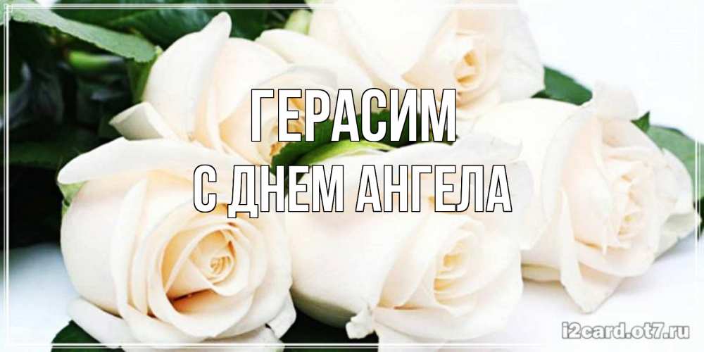 Открытка Герасим С днем ангела. белые розы и зеленые листья. открытка с красивыми белыми розами для родных