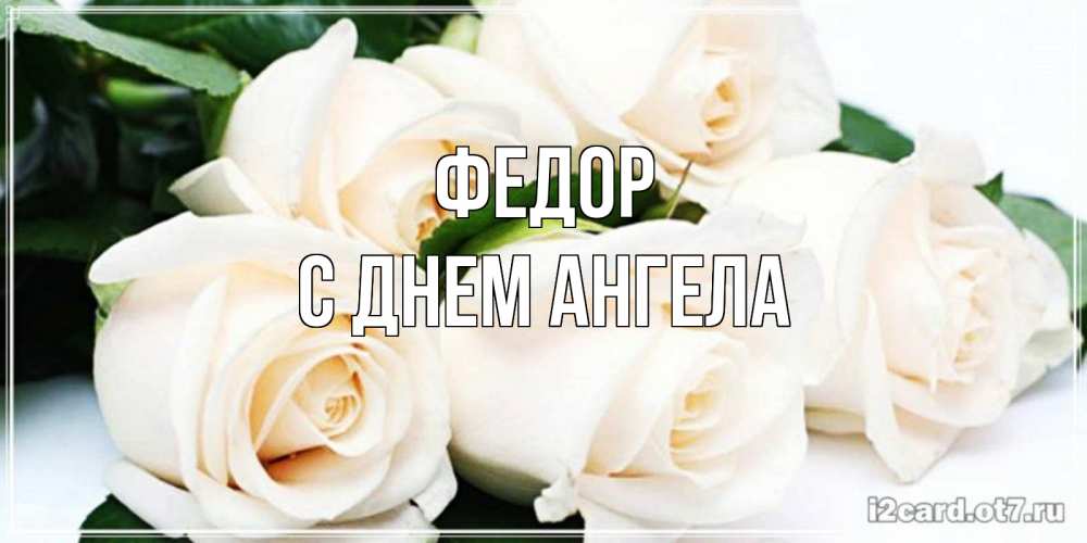 Открытка Федор С днем ангела. белые розы и зеленые листья. открытка с красивыми белыми розами для родных
