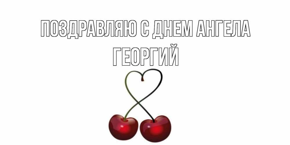 Открытка Поздравляю с днем Ангела Георгий. Вишенки с веточками в виде сердца. вишня