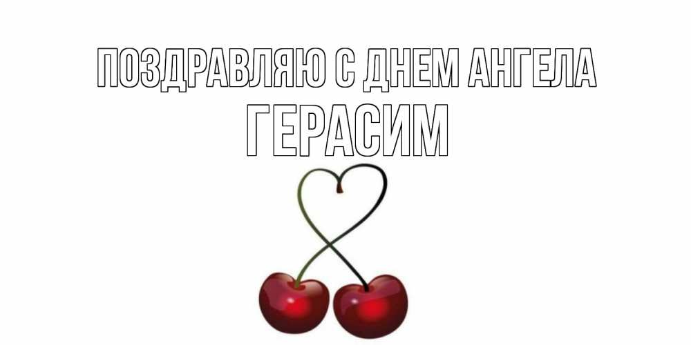Открытка Поздравляю с днем Ангела Герасим. Вишенки с веточками в виде сердца. вишня