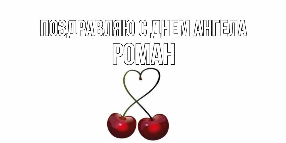 Открытка Поздравляю с днем Ангела Роман. Вишенки с веточками в виде сердца. вишня