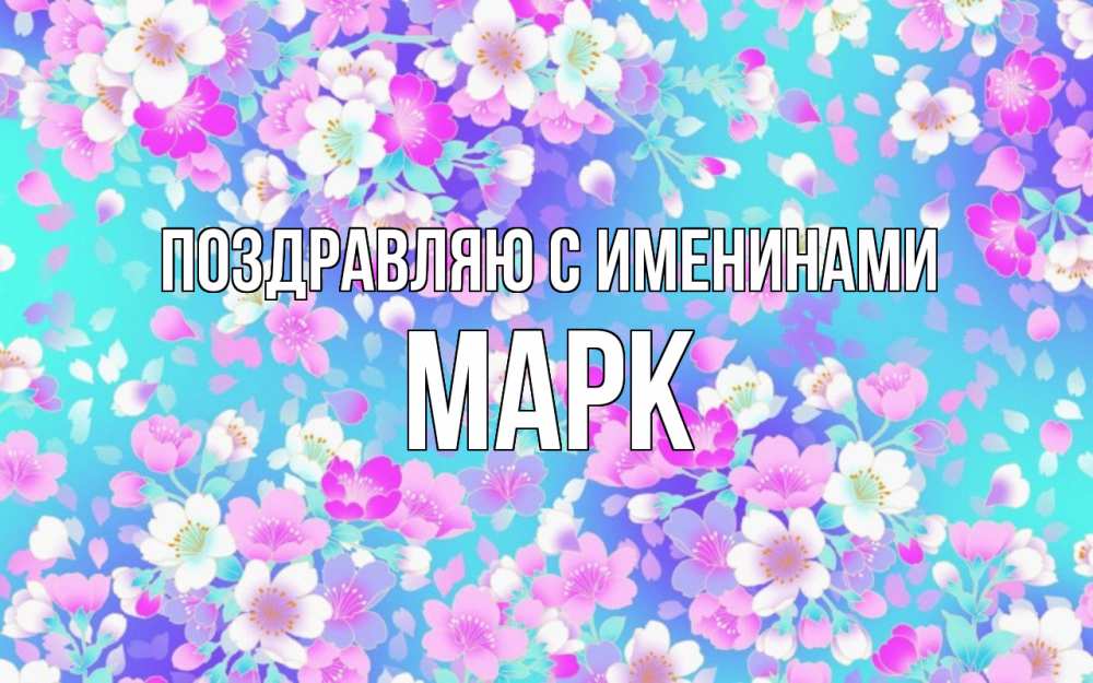 Открытка Поздравляю с именинами Марк. фон с тортиками и подарками. открытка с заливкой