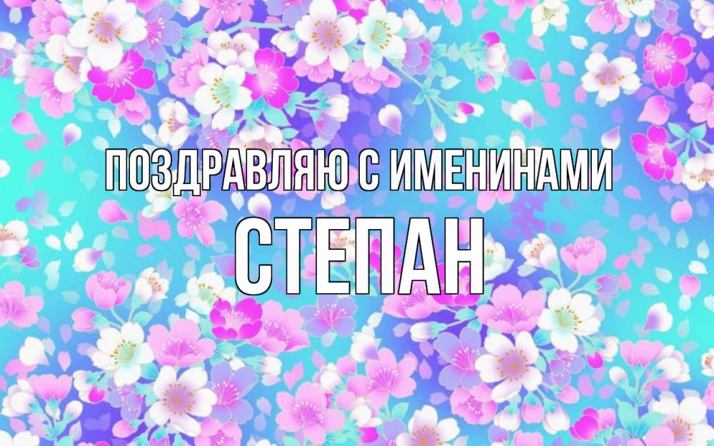 Открытка Поздравляю с именинами Степан. фон с тортиками и подарками. открытка с заливкой