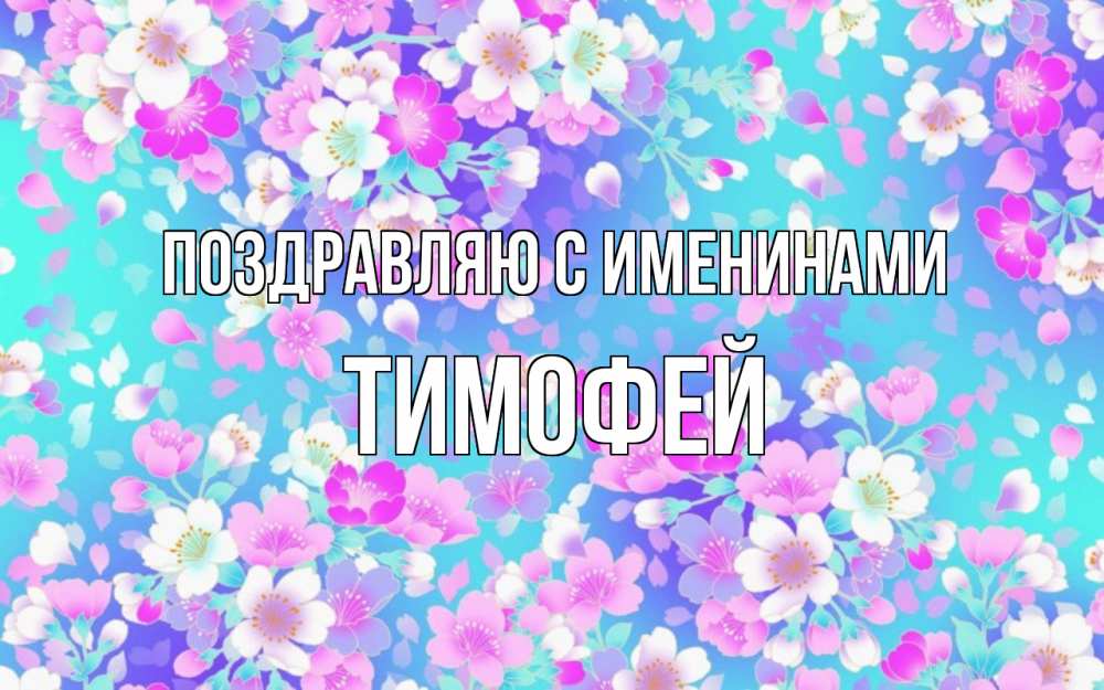 Открытка Поздравляю с именинами Тимофей. фон с тортиками и подарками. открытка с заливкой