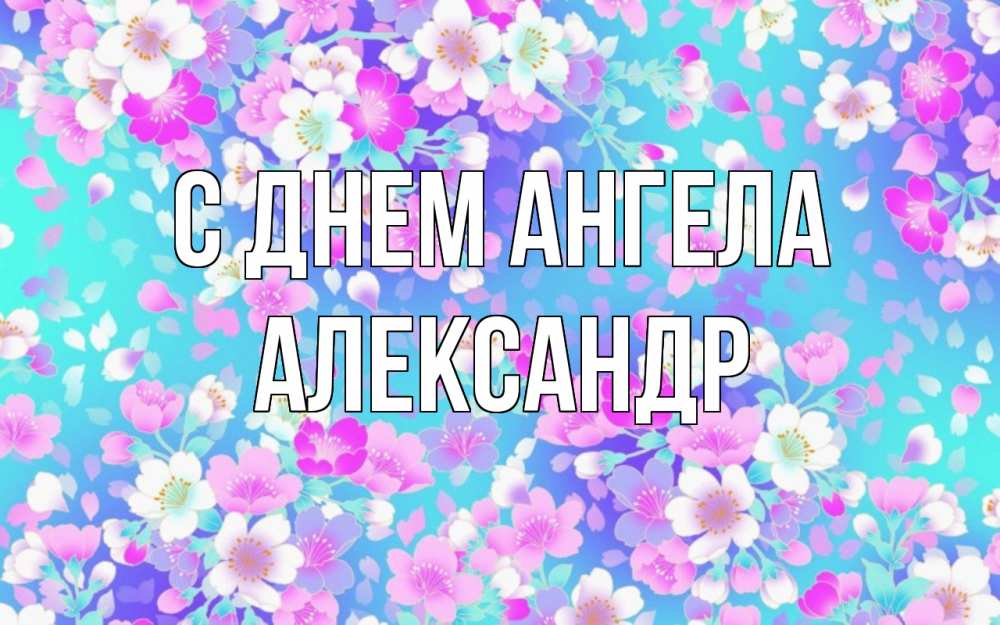 Открытка С днем Ангела Александр. фон с тортиками и подарками. открытка с заливкой