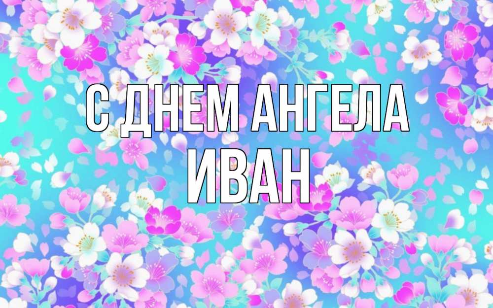 Открытка С днем Ангела Иван. фон с тортиками и подарками. открытка с заливкой