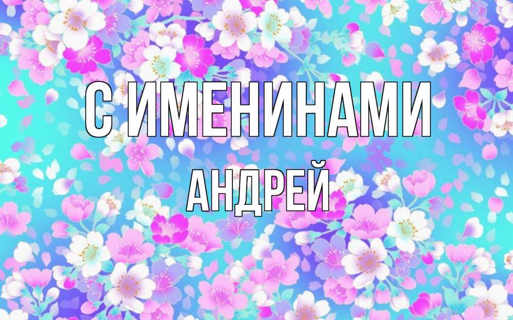 Открытка С именинами Андрей. фон с тортиками и подарками. открытка с заливкой