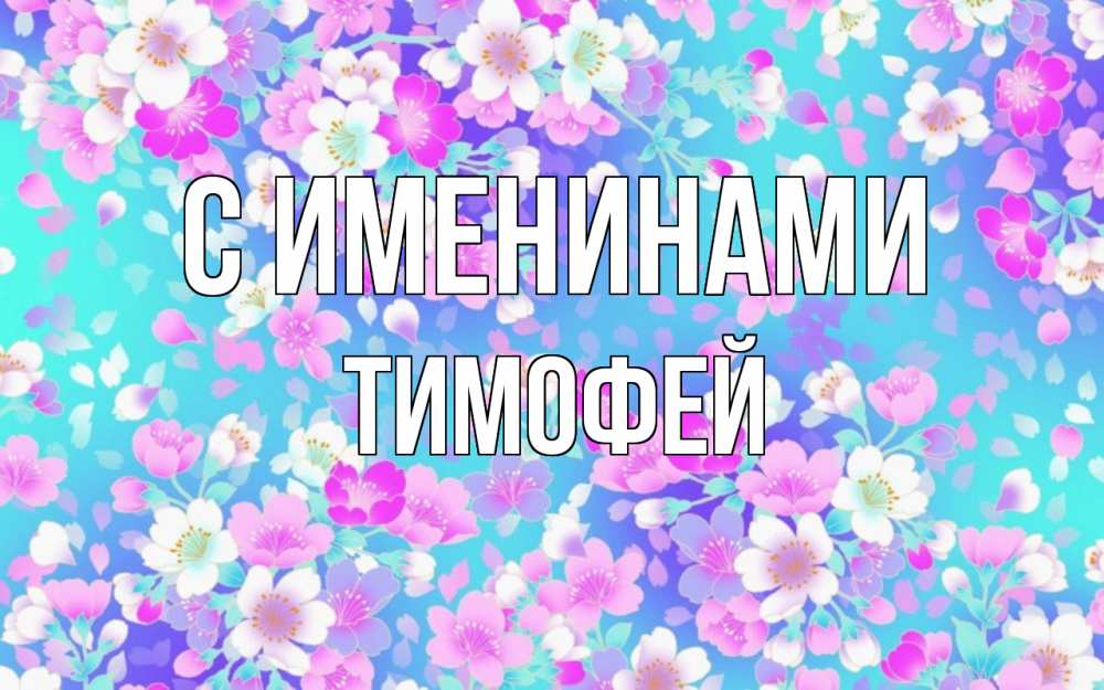 Открытка С именинами Тимофей. фон с тортиками и подарками. открытка с заливкой