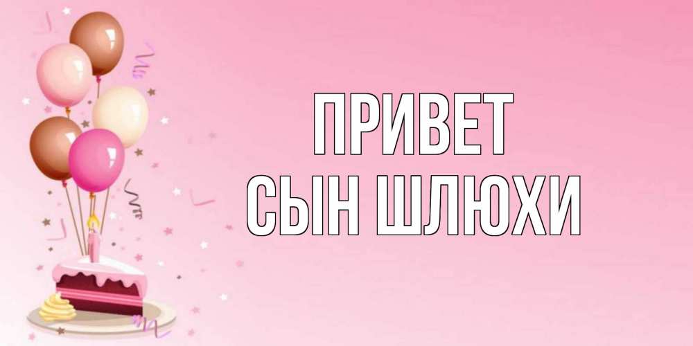 Открытка Привет Сын шлюхи. открытка с тортиком на тарелке и шарики. розовая открытка с шарами и тортинкой на день рождения