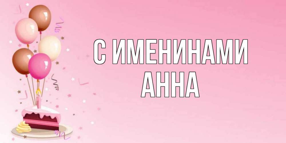 Открытка С именинами Анна. открытка с тортиком на тарелке и шарики. розовая открытка с шарами и тортинкой на день рождения