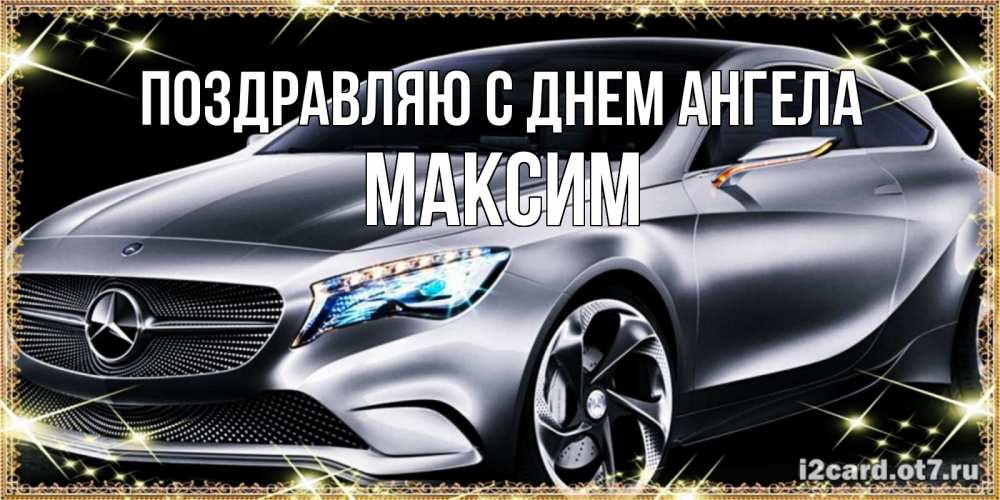 Открытка Поздравляю с днем Ангела Максим. машина на день рождения в рамочке с подписью. машина мерседес супер класс